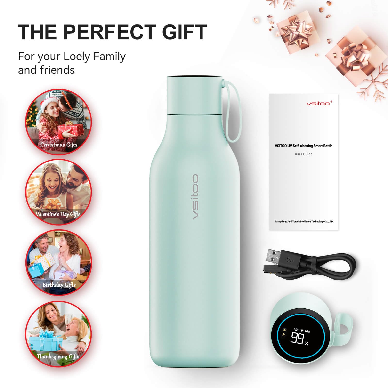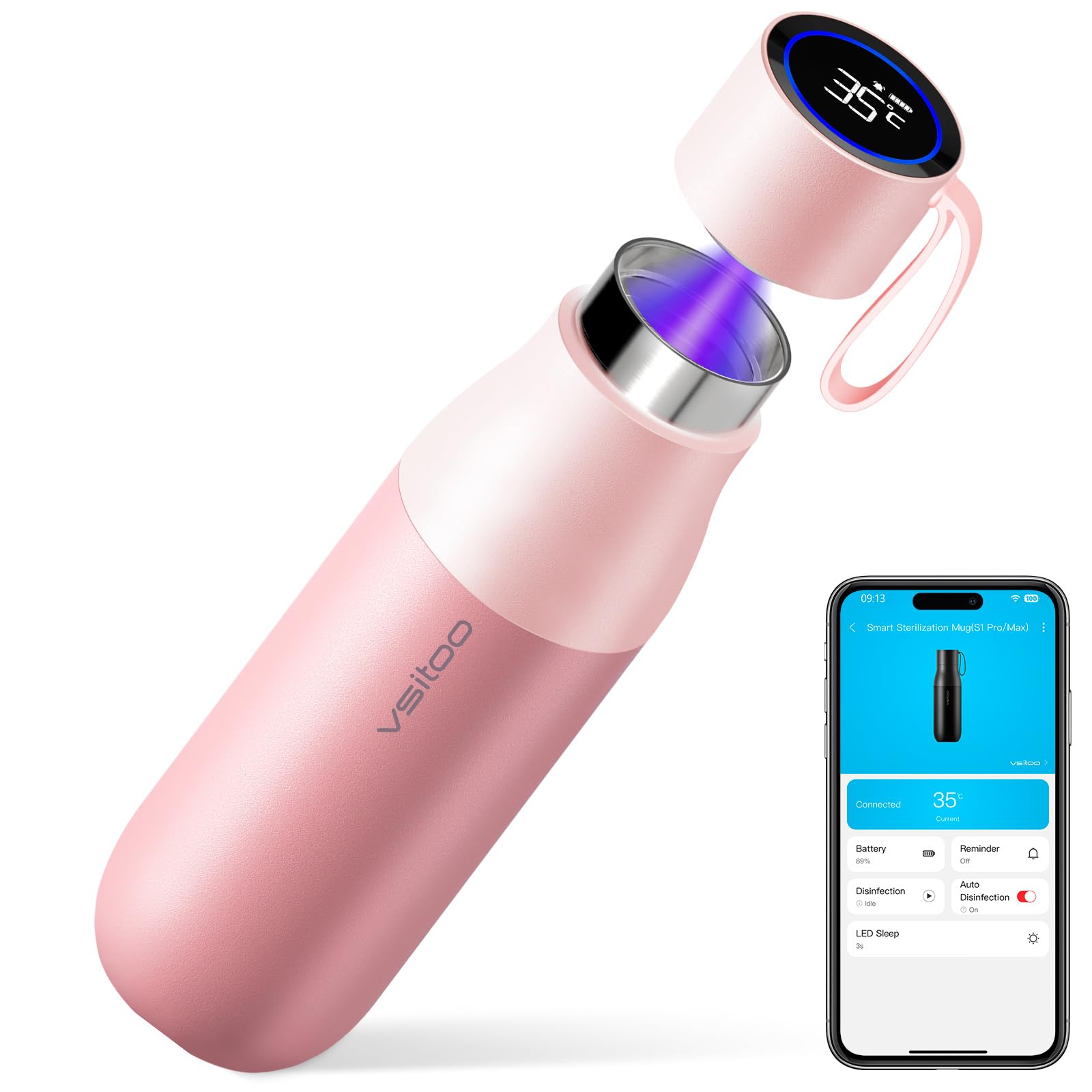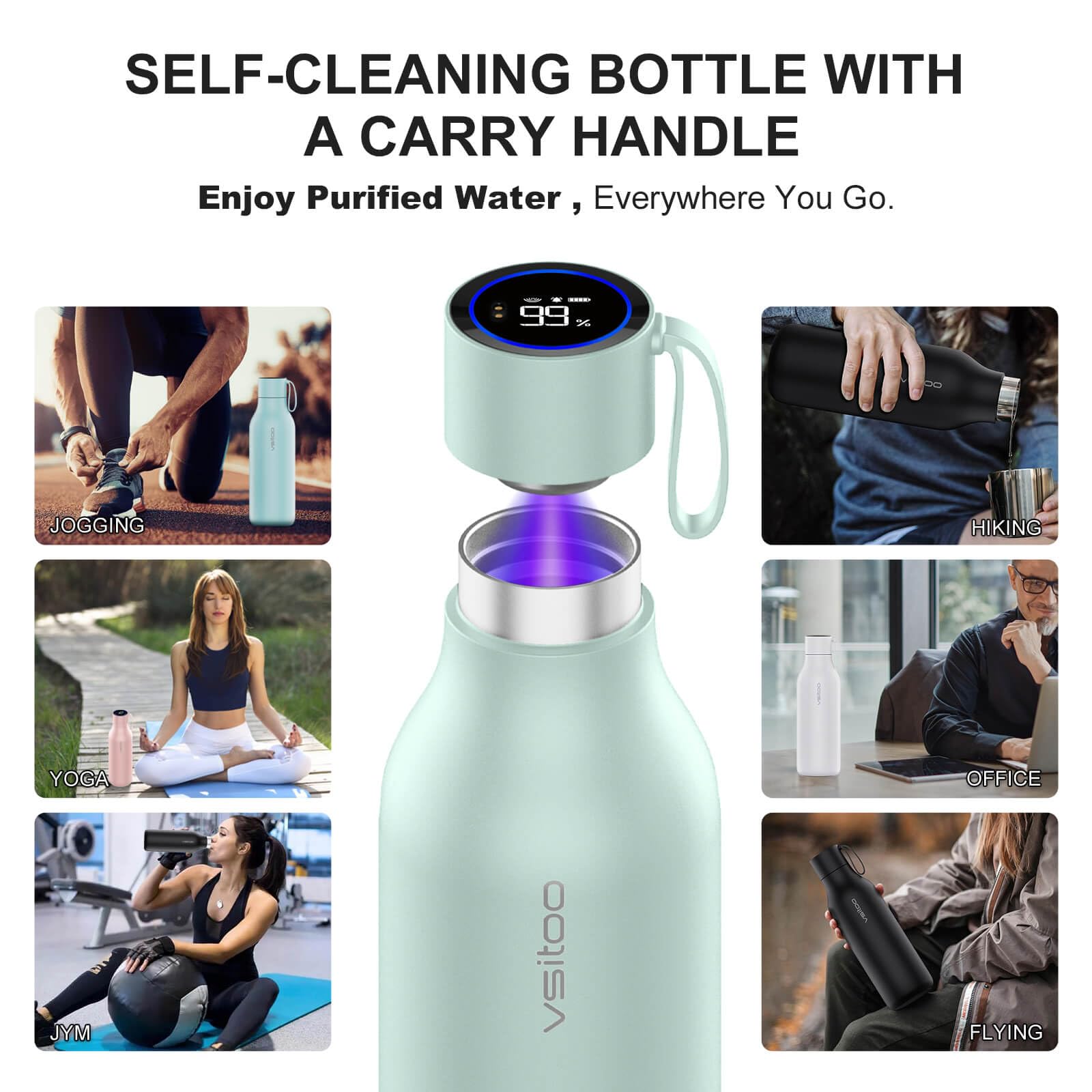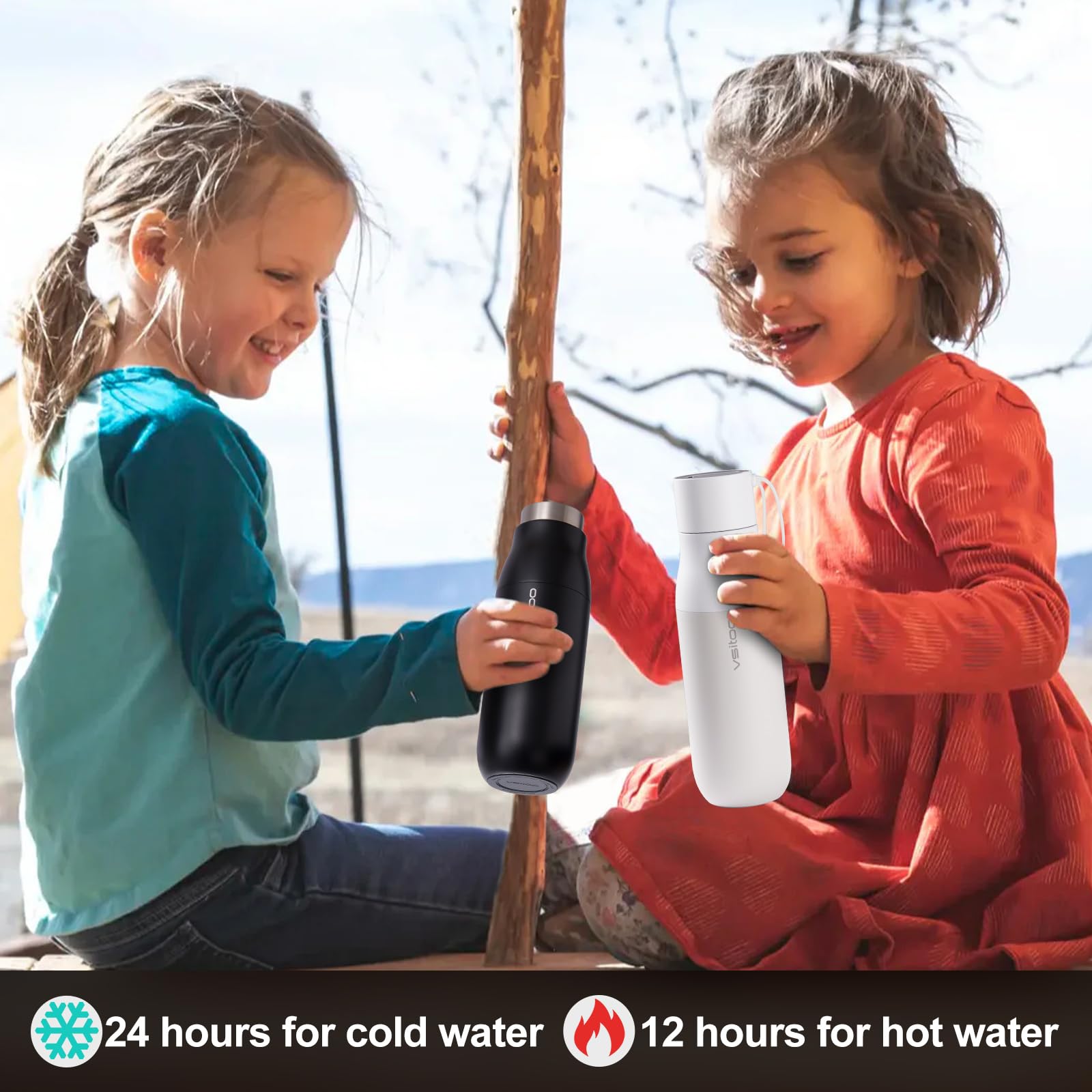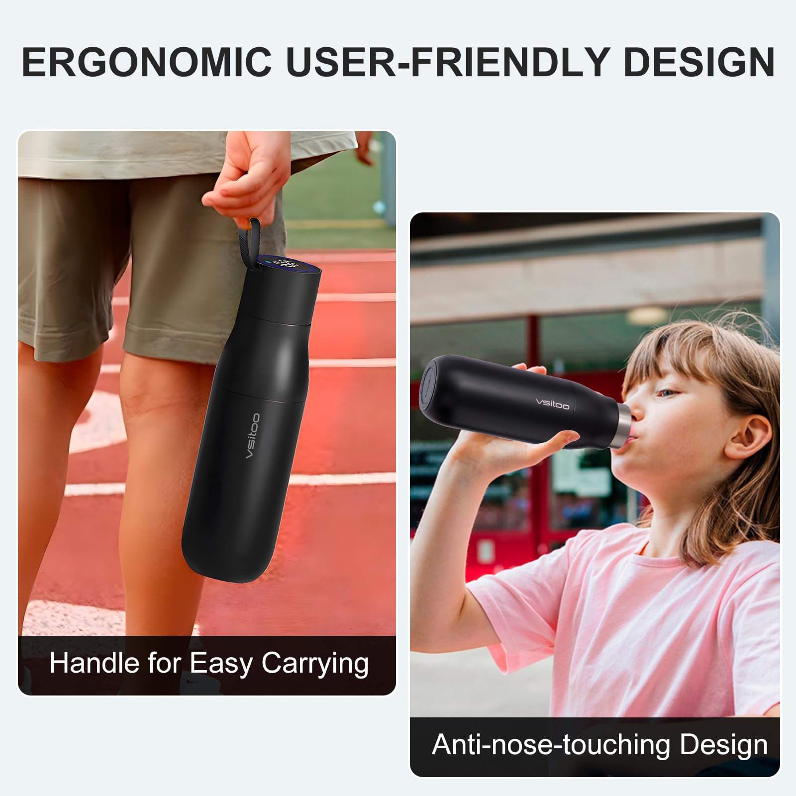 【Smartphone or Touch Control】– With the Vsitoo app, you can schedule auto-cleaning and manage smart features. Even without the app, this Smart Water Bottle operates independently—just long-press the touch screen on the lid for full control on the go.
