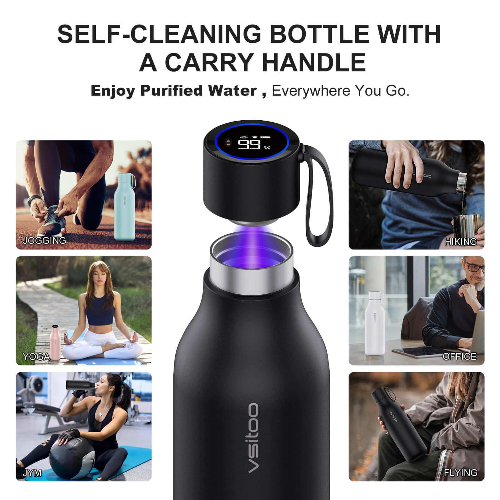 VSITOO 33 oz Smart Self-Cleaning Water Bottle,Stainless Steel Vacuum Flask,BPA-Free, One-Touch Clean,30-Day Battery, Magnetic Charging,Portable Bottle for Travel,Gym or Office,Black