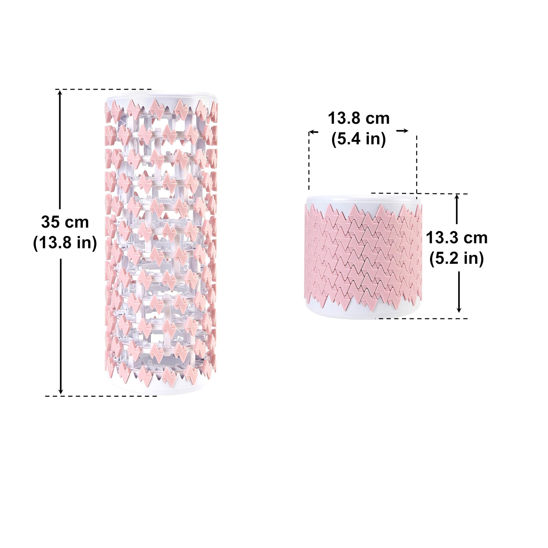 Collapsible foam roller showing its expandable structure alongside a measuring tape to showcase its size from 5.5 inches to 13 inches.