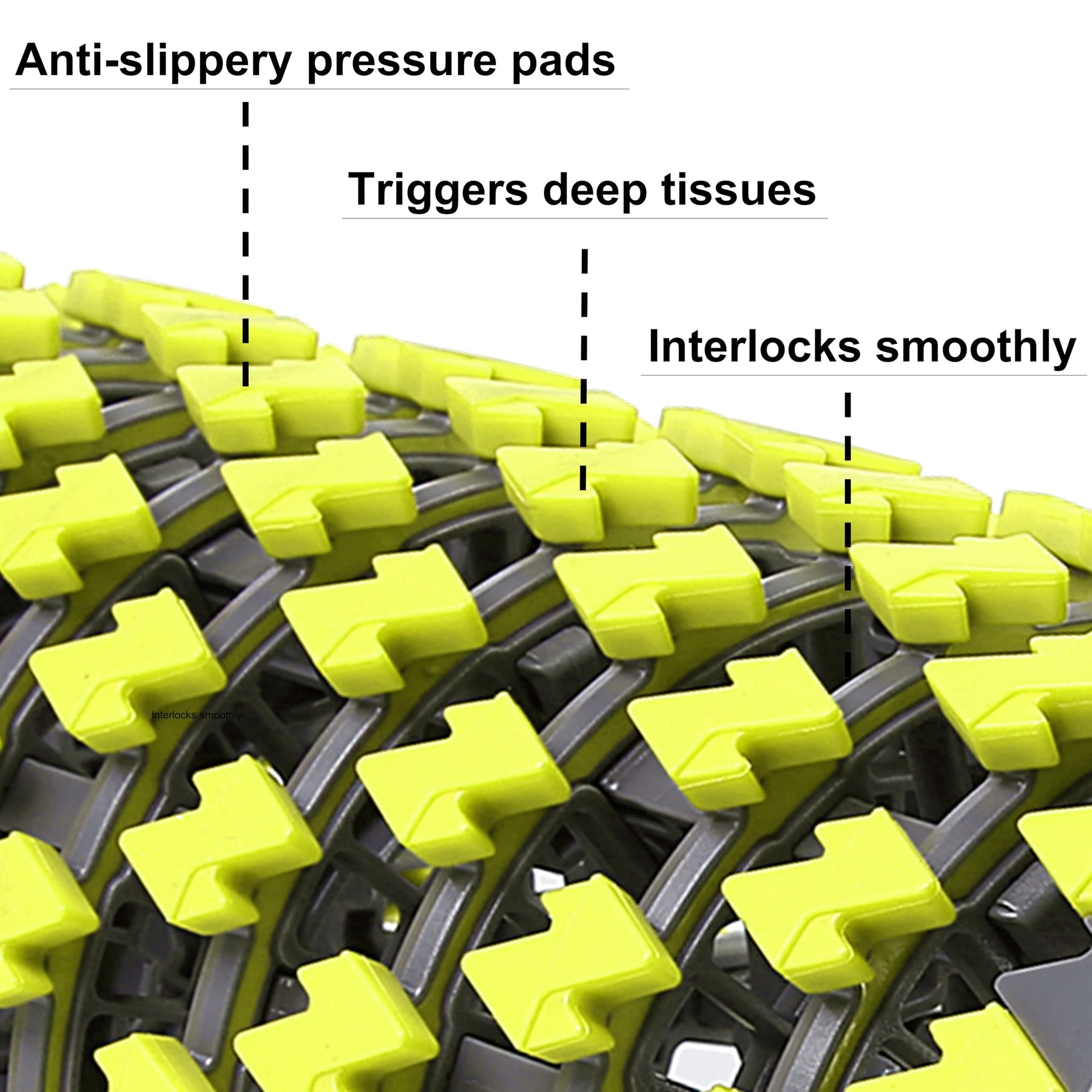Close-up of the collapsible foam roller, demonstrating its interlocking technology for easy storage and portability.