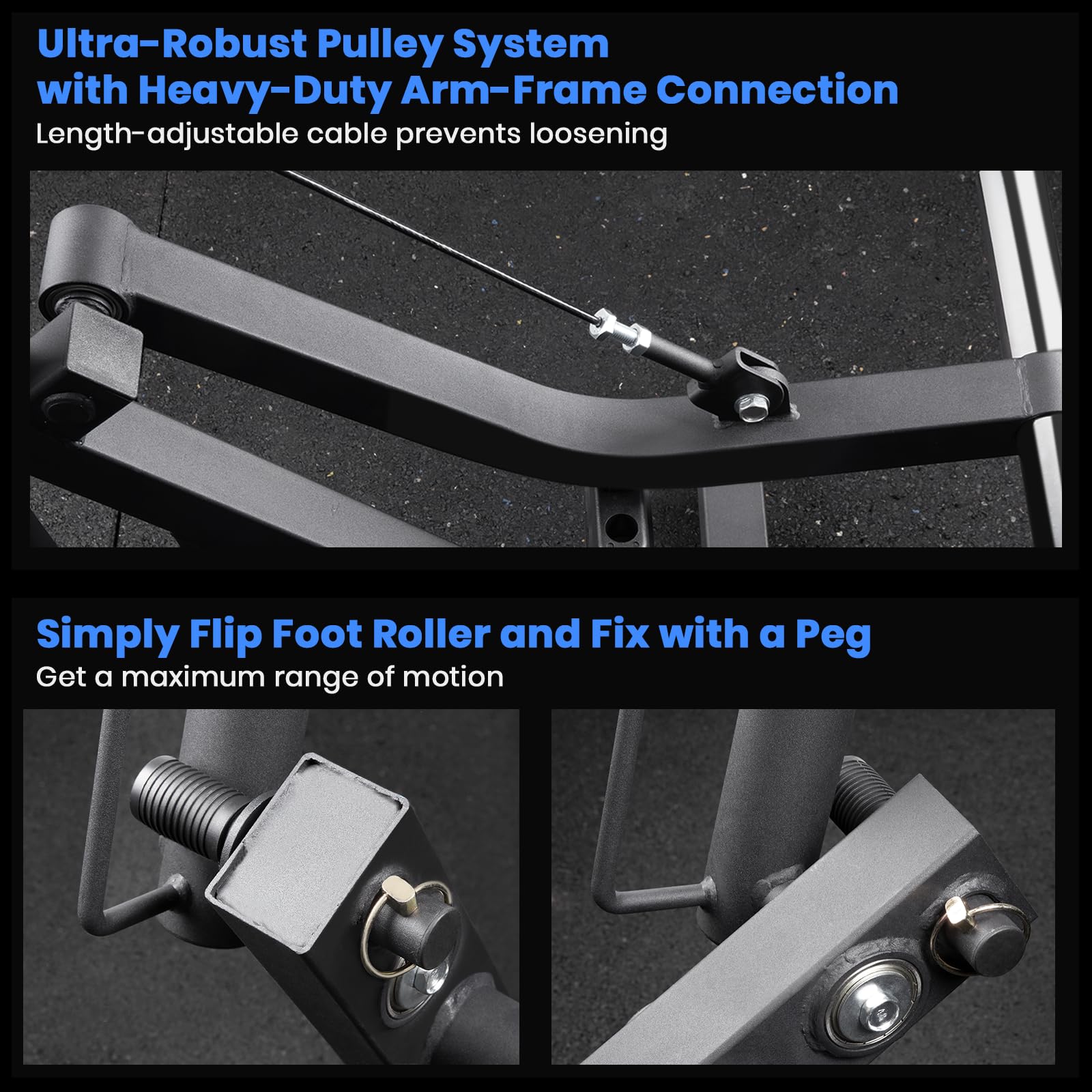 Excel in Your Toughest Workouts with Fortified Structure: The weight arm combined with a strong aluminum pulley and reinforced 8mm-thick cable, connected with upgraded technique, allows for up to 600LBS plate loading capacity, and will last through grueling workouts. The weight support frame has been upgraded with 6-gauge steel and extended feet, eliminating wobbling or foot lifting during high-intensity workouts. Overall heavy-gauge steel ensures a user capacity of 500LBS.