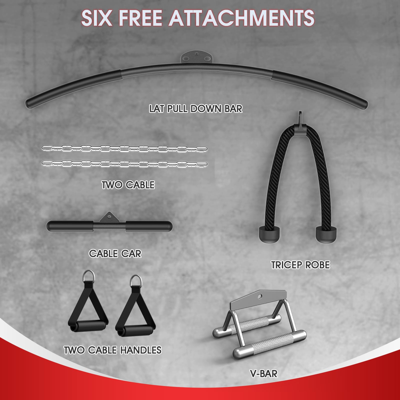 HOME GYM SYSTEM: Constructed from commercial grade steel.This cable machine weights more than 200lbs which provides you more stable and safer workout experience. Gym size design offers your versatile workouts.