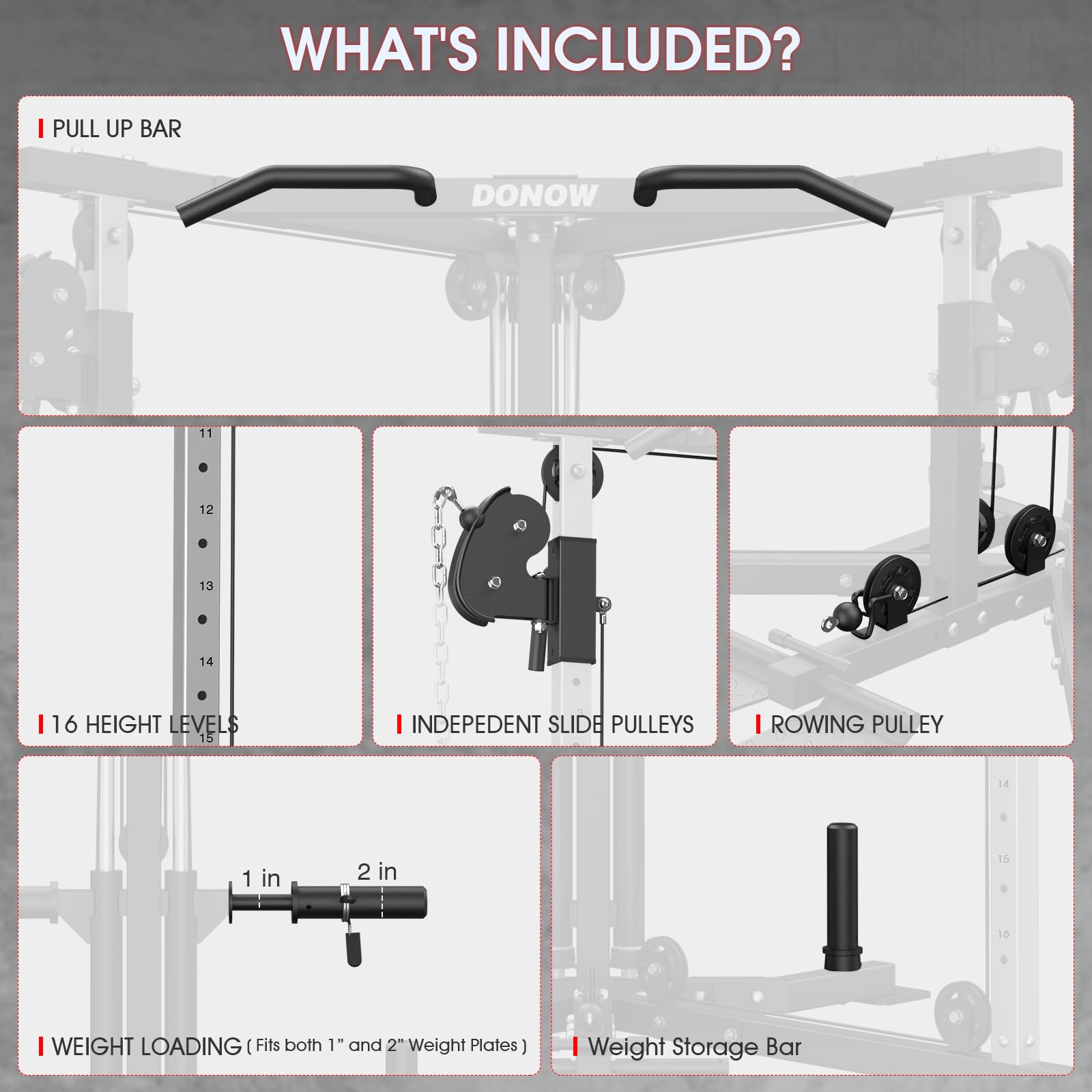 DONOW Cable Crossover Machine, Cable Fly Machine Home Gym System Workout Station with Dual Pulley System Pull-Up Bar Cable Bar and LAT Pull Down System (DN-5011)