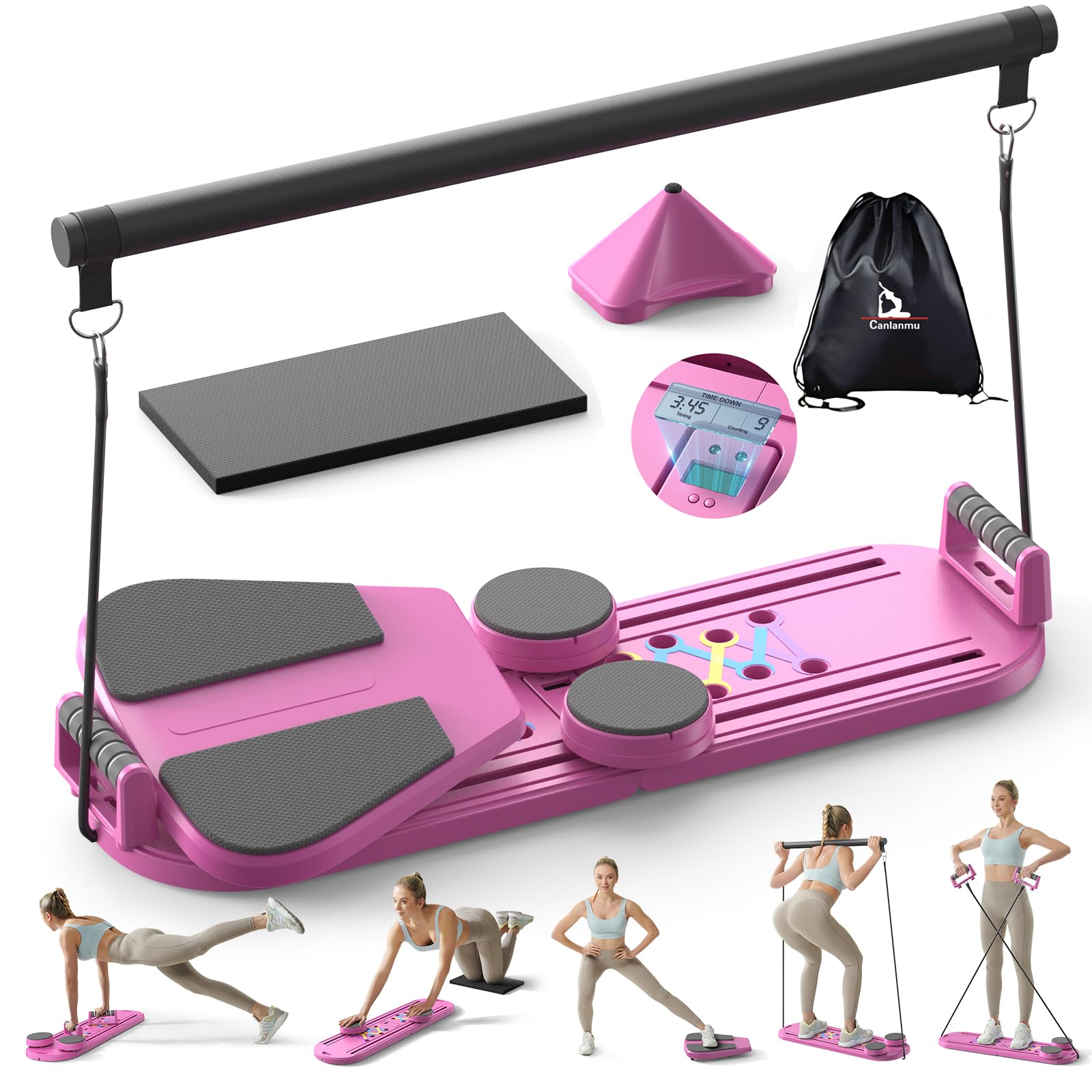 The Pilates Board is a multifunctional fitness tool that features an ab roller wheel, resistance bands, push-up handles, and a balance board. With this comprehensive training equipment, you can easily switch up your exercises and target multiple muscle groups. Whether you're looking to tone your abs, strengthen your arms, or improve your overall body balance, this Pilates reformer has you covered.
