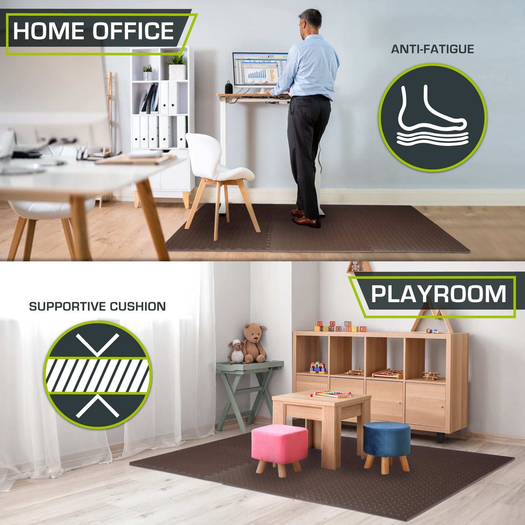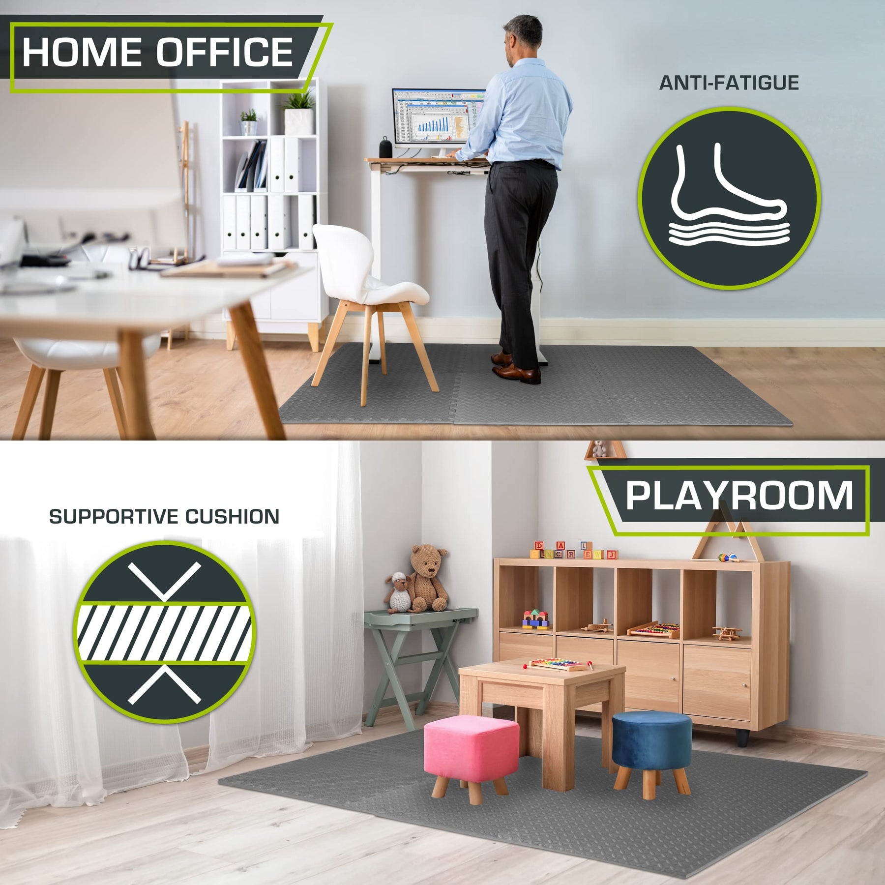 ProSource puzzle exercise mat has dense, comfortable interlocking foam tiles, that can be assembled in minutes. They are made from high density EVA foam, which gives the tiles their soft feel and greater durability. These foam tiles are non-toxic, waterproof, impact absorbent and protect floors while providing a comfortable workout area. ProSource puzzle exercise mat is perfect for professional gyms, home gyms, crossfit, yoga, Pilates, MMA, gymnastics, children play areas and others.