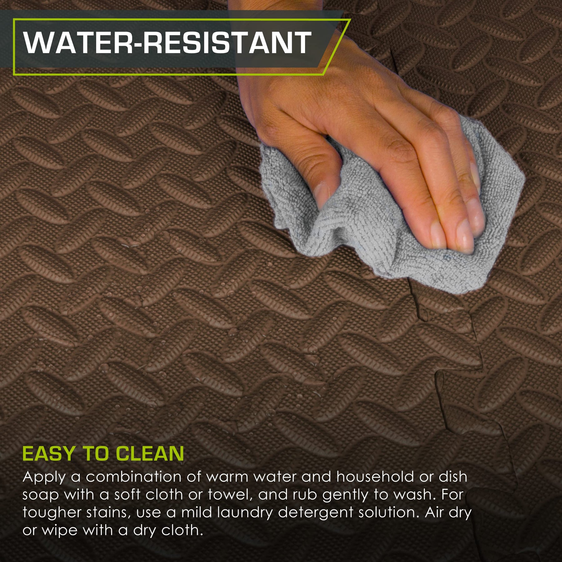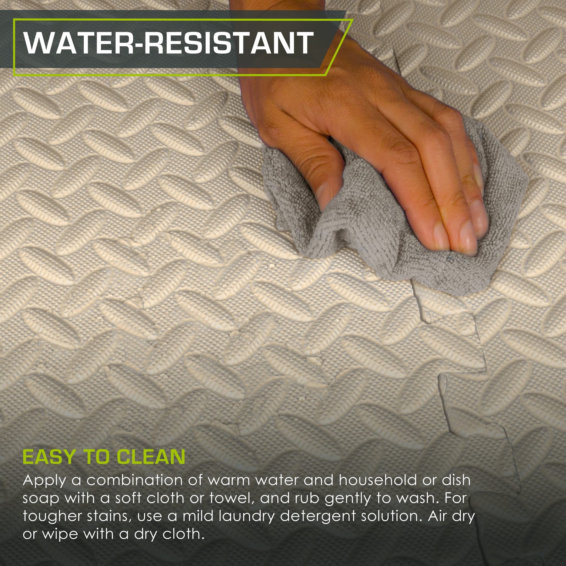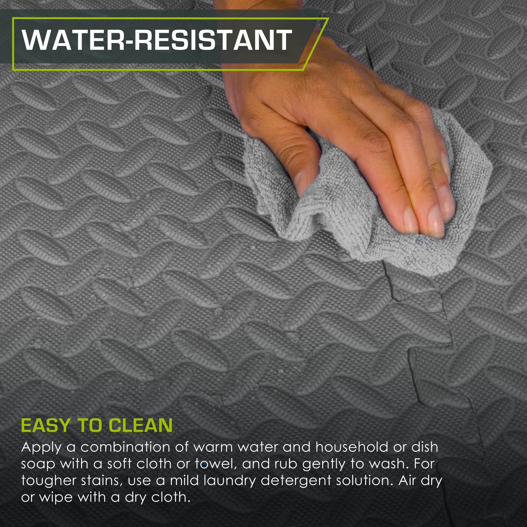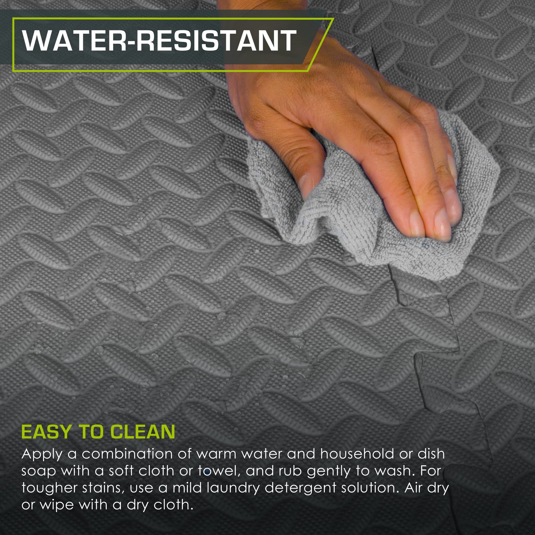 - Versatile – The water-resistant, noise-reducing design is easy-to-clean, great for indoor purposes like in garages as a protector, gyms, a home fitness room, or even children’s play areas as a playmat.