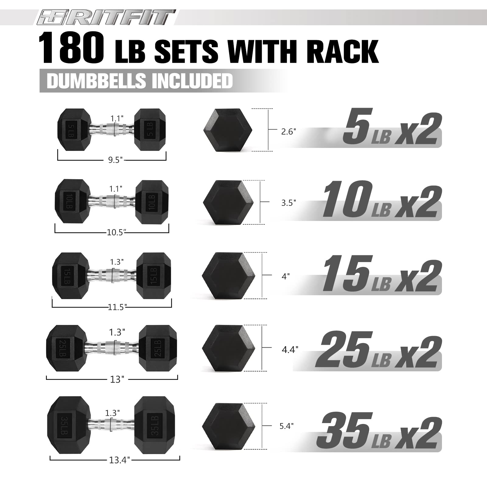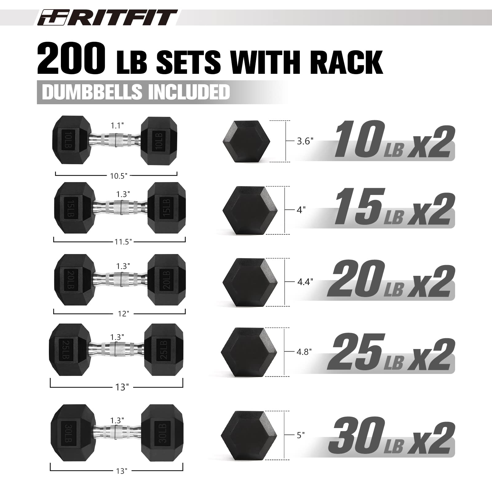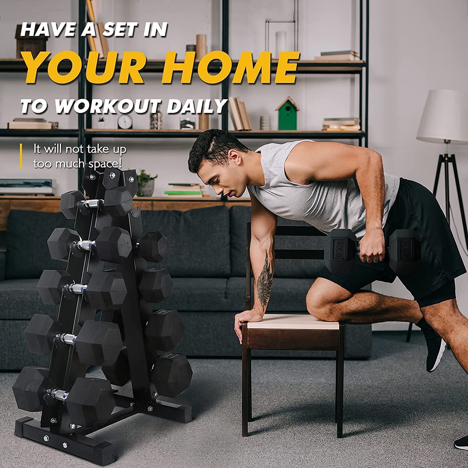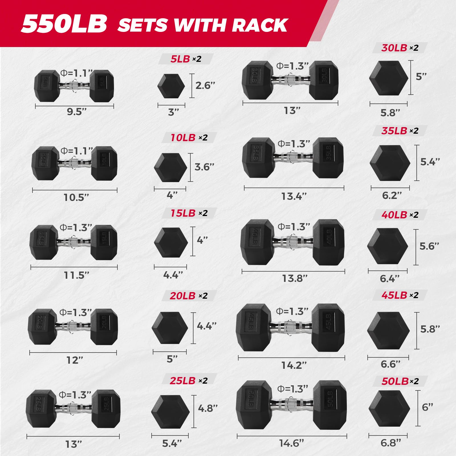 Type: Rubber hex dumbbell set (optional rack)