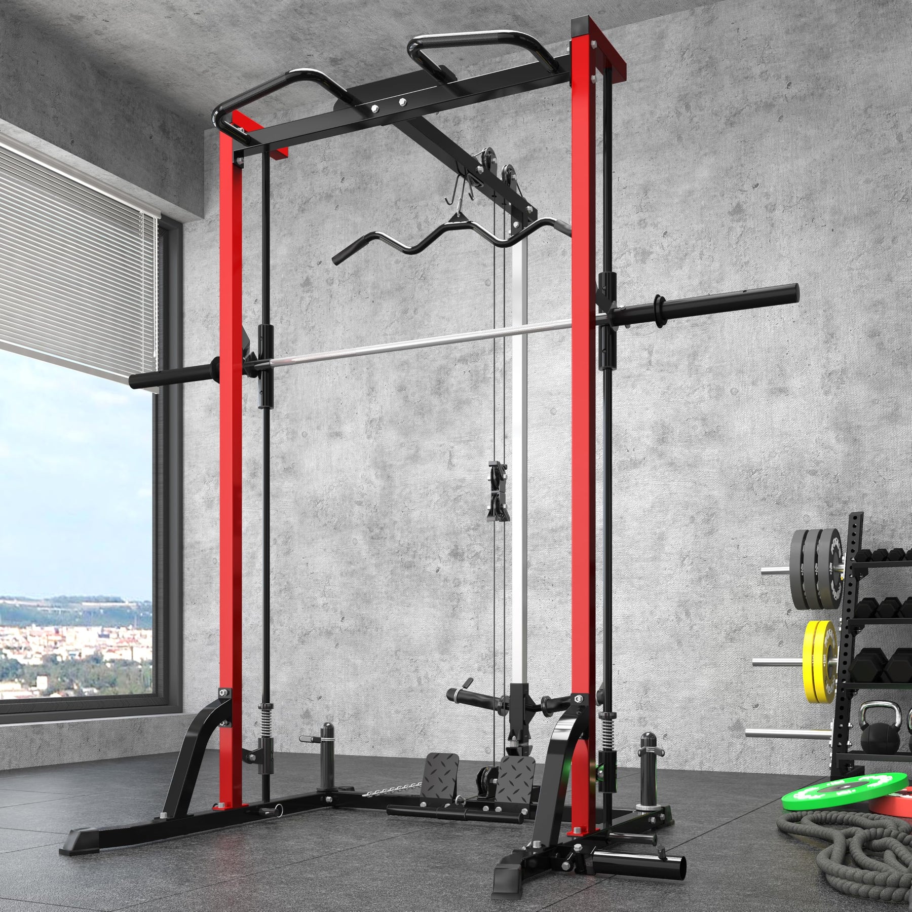 Transform your home gym with a commercial-grade Smith system that combines free weights, guided barbell training, and cable functionality into one powerful setup.